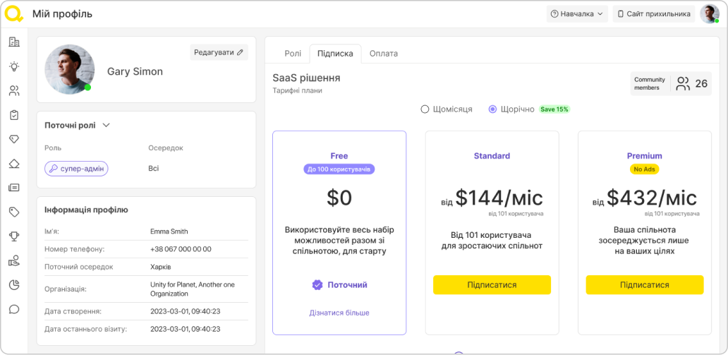Якщо клієнт не оплатив тариф до кінця кредитного періоду, панель адміністратора переходить в стан “перегляду” (Read Only). Що це означає? Режим “перегляду” є обмеженням роботи сервісу в разі несвоєчасної оплати згідно з обраним тарифом. В цьому режимі клієнт та його адміністратори втрачають можливість створювати новий контент для своєї організації — а саме, створювати і публікувати нові новини, голосування та квести. Також стає неможливо верифікувати результати квестів, нових користувачів та виносити рішення щодо голосувань. Цей режим автоматично відключається у випадку оплати згідно обраному тарифу.